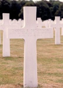 Darrell R. Dickenson enlisted on 29 November 1942. He was sent overseas on 7 September, 1943.The airplane was hit by flak that set off flares who where on board. Three crew members were taken prisoner, seven were killed who were initially buried at the community cemetery of Ölper.