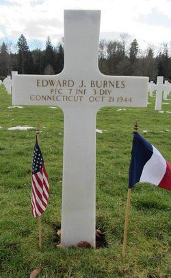 Pfc Edward J. Burnes attended high school for three years and was a machinist before he enlisted in Hartford, Connecticut on 9 July 1941.In March 1944, he was wounded by small arms fire to his knee during the fighting in the Anzio beachhead.