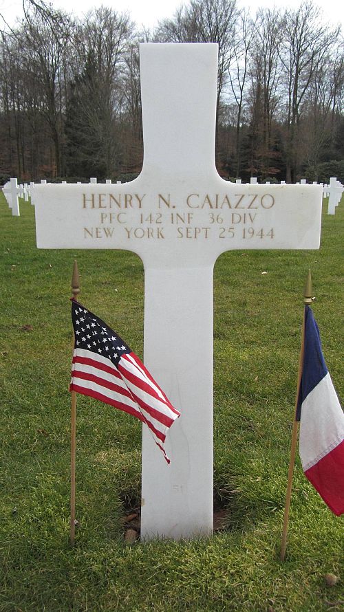 Pfc Henry N. Caiazzo enlisted in New York City, New York on 19 November 1942.Source of information: André Koch, www.abmc.gov, www.wwiimemorial.com, www.archives.gov - WWII Enlistment Record, www.ancestry.com - 1930/1940 Census / U.S. WWII Draft Cards Young Men / 142ndaar-.pdf / https://36th-id.frb.io / https://texasmilitaryforcesmuseum.org