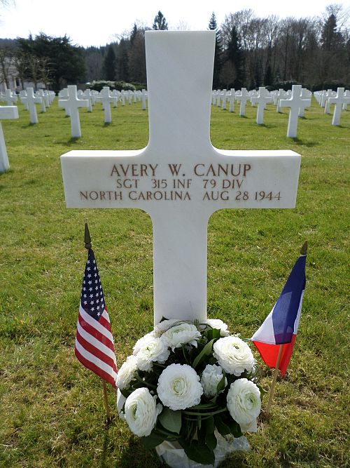 Sgt Avery W. Canup was employed at the Franklin Mill before he enlisted on 18 June 1942.He was first buried at the Temporary American Military Cemetery in Solers, France.