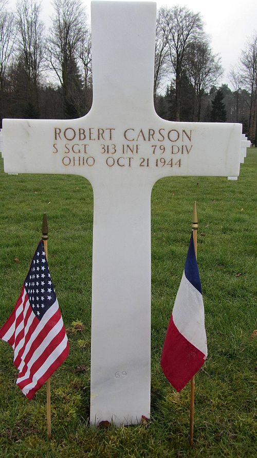 S/Sgt Robert Carson attended high school for three years and was a waiter before he enlisted in Toledo, Ohio on 20 June 1942.He was killed by artillery shell fragments in his chest.