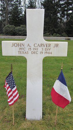 Pfc John A. Carver graduated from Reagan High School in 1942 and was a checker, employed by the Houston Shipping Corporation.He enlisted in Houston, Texas on 11 May 1943.