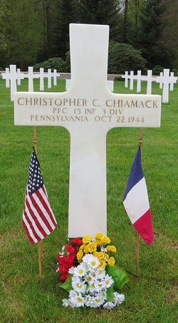 Pfc Christopher C. Chiamack attended high school for three years and was an elevator operator employed by the Woolworth Company in Pittsburgh before he enlisted in Pittsburgh, Pennsylvania on 22 May 1943. He was sent overseas on 18 November 1943.He was killed by artillery shell fragments in the kidneys.