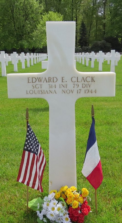 Sgt Edward E. Clack worked on his own farm before he enlisted.Source of information: Peter Schouteten, www.abmc.gov, www.wwiimemorial.com, www.ancestry.com - Headstone and Interment Record / U.S. WWII Draft Cards Young Men / 1930/1940 Census, Combat History 314th Infantry Regiment, www.findagrave.com – MAJ Jimmy Cotton