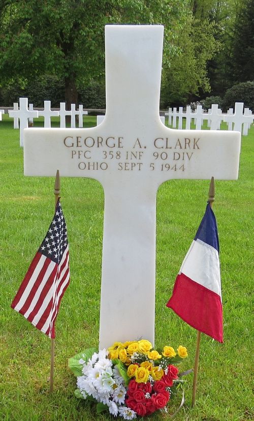 Pfc George A. Clark attended graduated from Cleveland Heights High School in 1934 and attended Miami University for two years. He was employed as a draftsman at Thompson Products, Incorporated.He enlisted in Cleveland, Ohio on 18 June 1941 and was sent overseas in April, 1944..