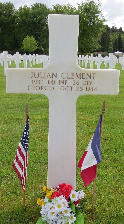 Pfc Julian Clement was married to Cora Bell Giddens on 21 December 1940.He enlisted at Camp Blanding, Florida on 9 November 1943.