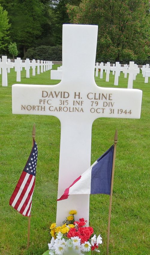 David H. Cline graduated from Lincolnton High School and Lenois Rhyne and Appalachlan College. He worked as a manager for the Eagle’s stores in various locations and afterwards worked as an accountant with the North State Finance and White Amusement Co.He enlisted at Fort Bragg, North Carolina on 11 August 1943 and was sent overseas in May 1944, arriving in France around the middle of June 1944.