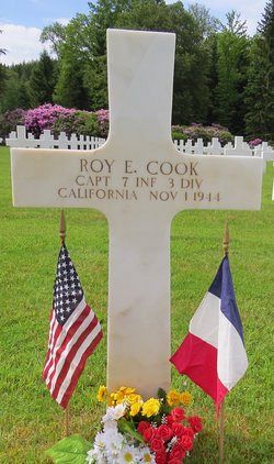 Capt Roy E. Cook was stationed at Fort George G. Meade, Maryland in 1941 where he was married to Alice Bingham on 2 April.Source of information: Leo Minne, www.abmc.gov, www.wwiimemorial.com, www.ancestry.com - 1930/1940 Census / U.S. Headstone and Interment Record / U.S. Draft Cards Young Men / U.S. WWII Hospital Admission Card, History 3rd Infantry Division WWII