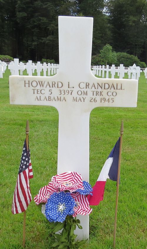 T/5 Howard L. Crandall enlisted at Fort McClellan, Alabama on 8 January 1942.He died of injuries to his skull, sustained in a railway accident.