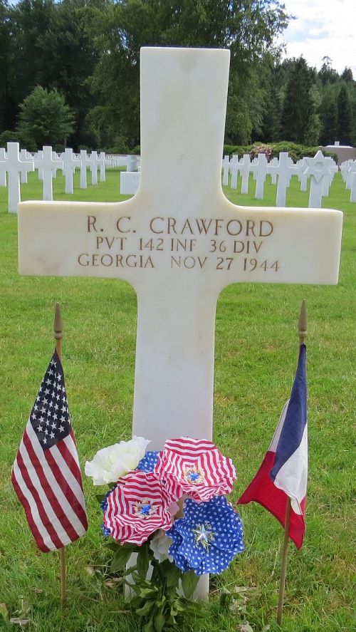 Pvt R. C. Crawford enlisted at Fort McPherson, Georgia on 27 August 1943.Source of information: André Koch, www.abmc.gov, www.wwiimemorial.com, www.archives.gov - WWII Enlistment Record, www.ancestry.com - U.S. WWII Draft Cards Young Men 1940-1947 / 142ndaar-.pdf / https://36th-id.frb.io