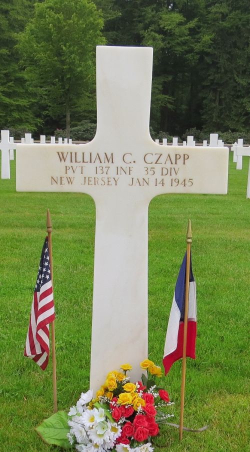 Pvt William C. Czapp was a mechanic and repairman of motor vehicles before he joined the Regular Army in Jersey City, New Jersey 27 September 1940.He died in a hospital due to the effects of artillery shell fragments to his face and forearm.