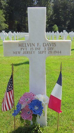 Pvt Melvin F. Davis was employed at the Picatinny Arsenal in Dover, Morris County, New Jersey when he enlisted on 3 December 1942.He was killed by a bullet in his neck.