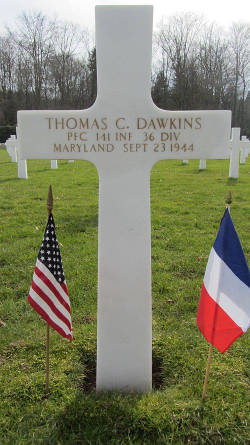 Pfc Thomas C. Dawkins enlisted in Baltimore, Maryland on 21 September 1943.Source of information: André Koch, www.abmc.gov, www.wwiimemorial.com, www.archives.gov - WWII Enlistment Record, www.ancestry.com - Headstone and Interment Record / U.S. WWII Draft Cards Young Men / 1910/1920/1930/1940 Census
