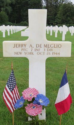 Pfc Jerry A. De Meglio attended high school for one year and was employed by the Cary Safe Company.He enlisted in New York, New York on 3 September 1943.
