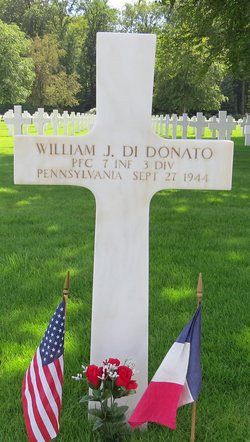 Pfc William J. Di Donato enlisted in Philadelphia, Pennsylvania on 27 July 1943 and was sent overseas early in 1944.He was killed by small arms fire.
