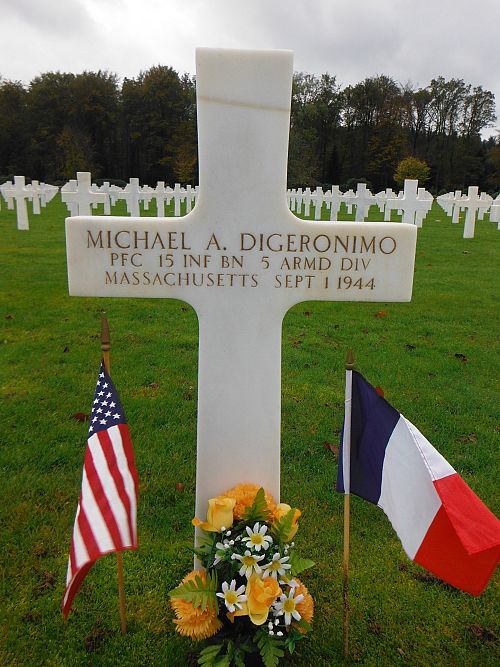 Pfc Michael A. Digeronimo attended Natick High School and worked at the Harwood Ball Factory.He enlisted in Boston, Massachusetts on 15 March 1941.