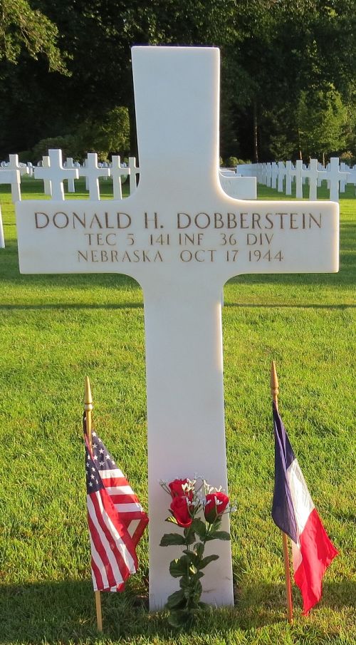 Donald H. Dobberstein was married to Juanita Mae Zimmerman on 19 August 1941.Source of information: André Koch, www.abmc.gov, www.wwiimemorial.com, www.ancestry.com - 1930/1940 Census / Headstone and Interment Record / U.S. WWII Draft Cards Young Men, 1940-1947 / Nebraska, U.S., Select County Marriage Records, 1855-1908 / https://36th-id.frb.io / 141aar-October-November-1944.pdf