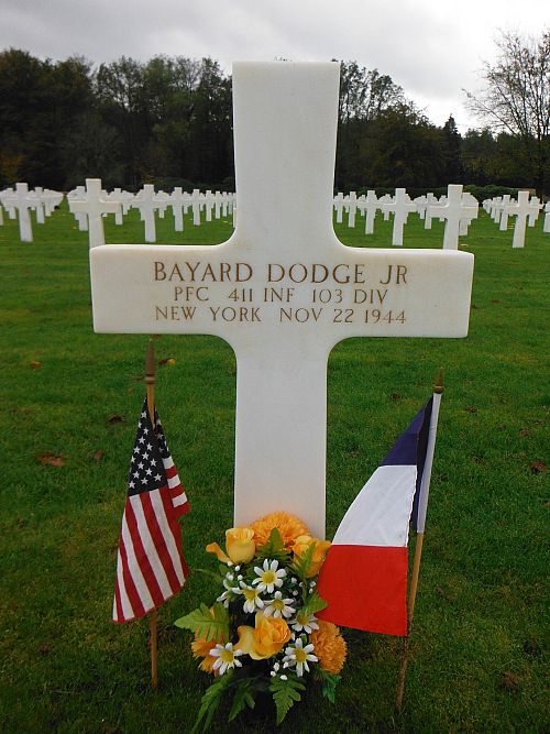 Pfc Bayard Dodge Jr. attended Deerfield Academy.He enlisted in New York City, New York on 30 June 1943 and was selected for the Army Specialized Training Program. When this program was disbanded, he was transferred to the infantry.