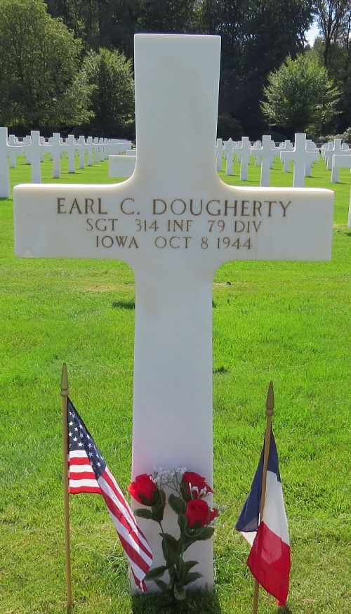 Sgt Earl C. Dougherty was employed at the Frank Eblen Construction Company before he enlisted at Fort Des Moines, Iowa on 12 June 1942.He was killed by artillery shell fragments to his face and neck.