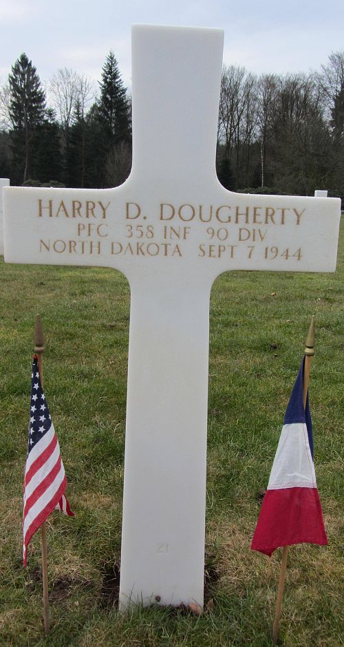 Pfc Harry D. Dougherty was first buried at the Temporary American Military Cemetery in Champigneul, France.Source of information: Peter Schouteten, Terry Hirsch, www.abmc.gov, www.wwiimemorial.com, www.ancestry.com - Headstone and Interment Record / 1940 Census / WWII Draft Card