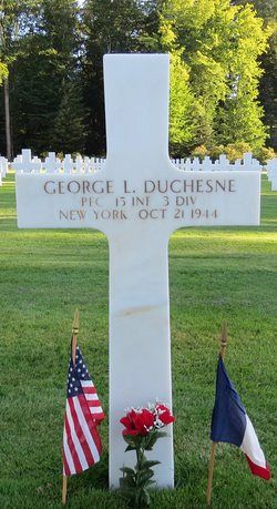 Pfc George L. Duchesne was a shipping clerk employed by Beaunit Mills Incorporation before he enlisted in Albany, New York on 5 April 1943.Source of information: Leo Minne, www.abmc.gov, www.wwiimemorial.com, www.ancestry.com - Headstone and Interment Record / 1930/1940 Census / U.S. WWII Draft Cards Young Men / U.S. WWII Hospital Admission Cards / Mickalonis Family Tree, History 3rd Infantry Division WWII