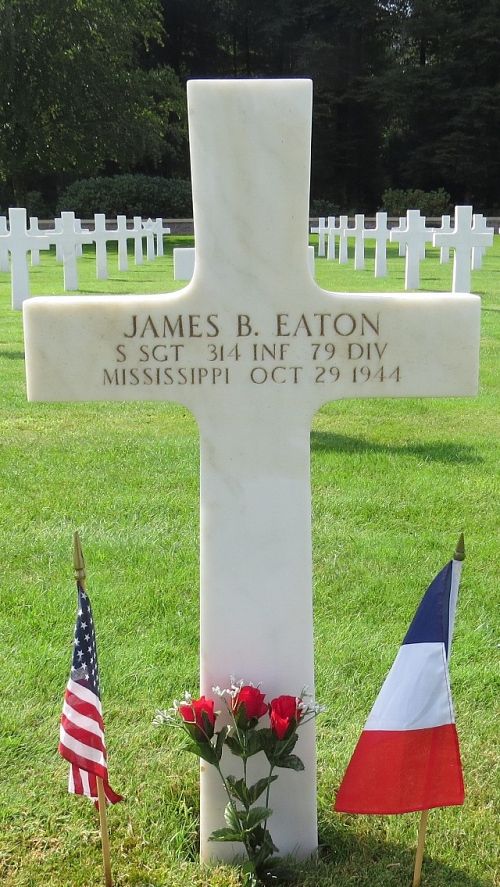 S/Sgt James B. Eaton attended high school for four years and was a cotton ginner before he enlisted at Camp Shelby, Mississippi on 12 June 1942.Source of information: Peter Schouteten, www.abmc.gov, www.wwiimemorial.com, www.archives.gov - WWII Enlistment Record, www.ancestry.com - Headstone and Interment Record / U.S. WWII Draft Cards Young Men / PMH Gedcom File, Combat History 314th Infantry Regiment