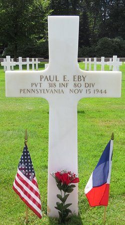 Pvt Paul E. Eby attended high school for four years and was a production worker before he enlisted in New Cumberland, Pennsylvania on 28 April 1944. He was sent overseas on 15 October 1944.Source of information: Leo Minne, www.abmc.gov, www.wwiimemorial.com, www.ancestry.com - Headstone and Interment Record / 1930/1940 Census / U.S. WWII Hospital Admission Card Files / Shellenhammer Family Tree / Pennsylvania Veteran Compensation Application Files / U.S. Draft Cards Young Men