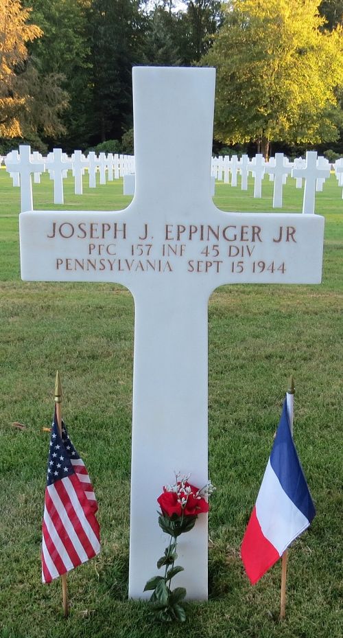 Pfc Joseph J. Eppinger Jr. enlisted in Pittsburgh, Pennsylvania on 22 April 1941.He was first buried at the Temporary American Military Cemetery in Saint-Juan, France.