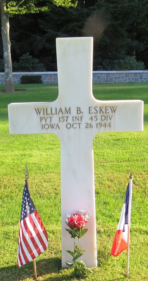 Pvt William B. Eskew attended high school for 1 year and was a retail manager before he enlisted in Camp Dodge Herrold, Iowa on 18 November 1943.Source of information: Peter Schouteten, www.abmc.gov, www.wwiimemorial.com, www.archives.gov – WWII Enlistment Record, www.ancestry.com - Headstone and Interment Record / Iowa World War II Bonus Case Files / Nichols Connell Family Tree, http://www.45thdivision.org, www.findagrave.com