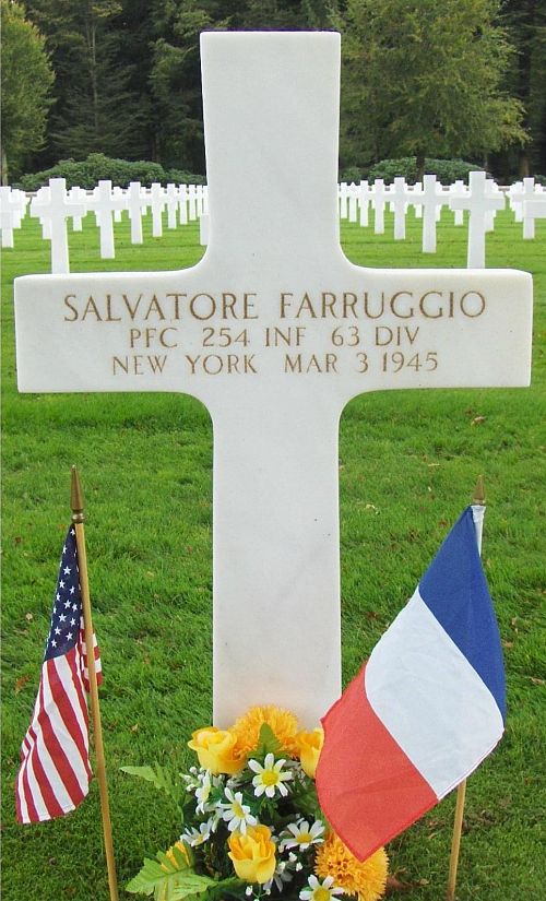 Pfc Salvatore Farruggio attended high school for three years and was employed at the Nate Biscuit Company before he enlisted in New York City, New York on 26 January 1944.He was awarded the Silver Star medal posthumously. The citation reads: