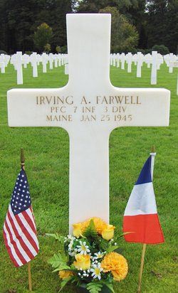 Pfc Irving A. Farwell attended high school for three years before he enlisted.He was married to Marion Patterson on 21 June 1941.
