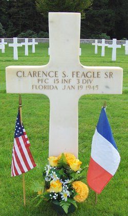 Pfc Clarence S. Feagle attended high school for four years and was a chauffeur before he enlisted at Camp Blanding, Florida on 12 January 1944.He was awarded the Bronze Star Medal for his action on 29 December 1944.