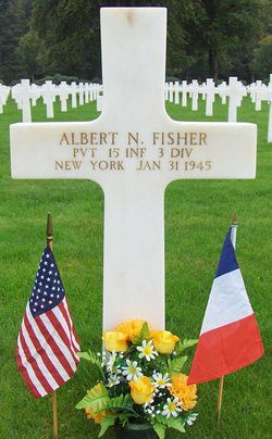 Pvt Albert N. Fisher attended high school for two years and worked on the family farm before he enlisted in Rochester, New York on 10 August 1944.He was killed by artillery shell fragments in the head.