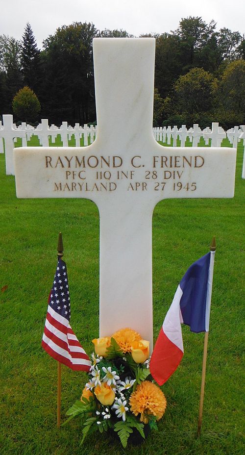 Pfc Raymond C. Friend was a lumberman before he enlisted in Baltimore, Maryland on 10 September 1941.He was taken prisoner and died in Stalag IX-C.