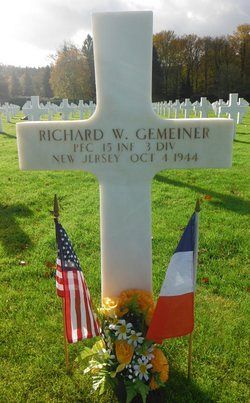 Pfc Richard W. Gemeiner attended college for one year before he joined the U.S. Army Reserve at the Pennsylvania State College on 26 October 1942.He was killed by artillery shell fragments in the thorax.