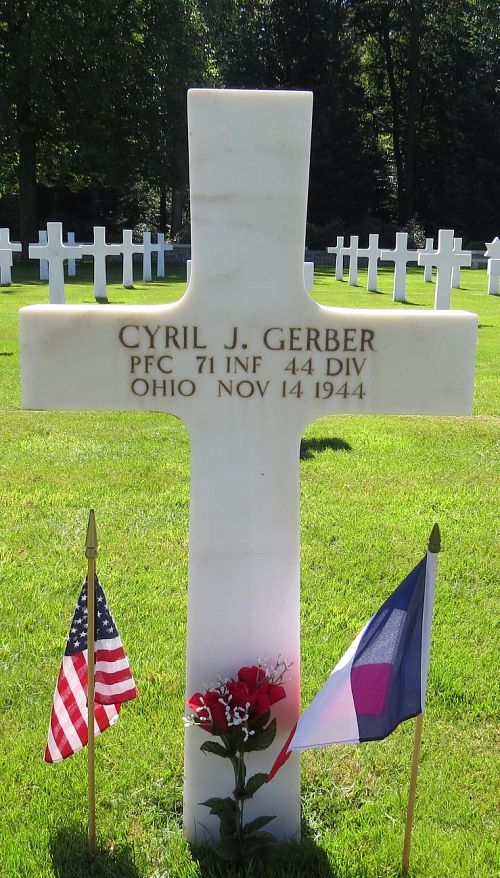 Pfc Cyril J. Gerber attended high school for three years before he enlisted in Toledo, Ohio on 24 August 1943. He was sent overseas in September 1944.He was killed by artillery shell fragments.