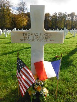 Pvt Thomas P. Gill attended high school for one year and was an elevator operator employed by the Emergrent Bank.He was killed by small arms fire in the thorax.