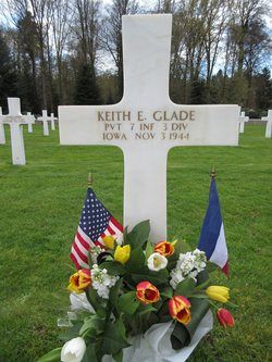 Pvt Keith E. Glade attended high school for four years and was a farmhand, employed by Herbert Fipling.He enlisted at Camp Dodge, Iowa on 8 December 1943.