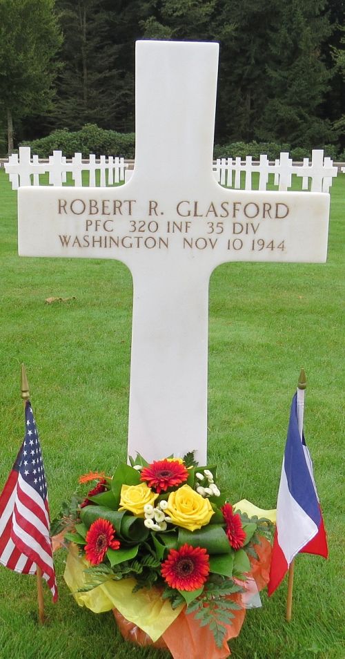 Pfc Robert R. Glasford attended high school for three years and worked on a farm before he enlisted in Spokane, Washington on 13 August 1942.Source of information: Peter Schouteten, www.abmc.gov, www.wwiimemorial.com, www.archives.gov - WWII Enlistment Record, www.ancestry.com - Headstone and Interment Record / U.S. WWII Draft Cards Young Men / 1930 Census, After Action Report 35th Infantry Division, www.findagrave.com - Eric Ackerman