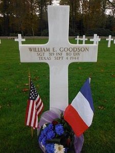 Sgt William E. Goodson attended high school for four years and worked on a farm before he enlisted in Houston, Texas on 14 July 1942.He was killed by a bullet.
