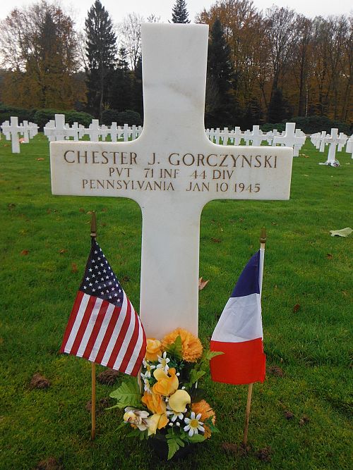 Pvt Chester J. Gorczynski attended high school for four years and worked on a farm before he enlisted at Fort George G. Meade, Maryland on 28 April 1944.He died in a hospital to the effects of artillery shell fragments in his chest and lungs.