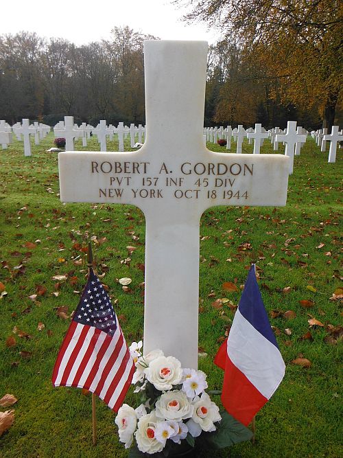 Pvt Robert A. Gordon attended high school for 4 years and was a clerk general office before he enlisted in New York City, New York on 2 September 1943.Source of information: Peter Schouteten, www.abmc.gov, www.wwiimemorial.com, www.archives.gov – WWII Enlistment Record, www.ancestry.com - Headstone and Interment Record / O’Conner Family Tree / 1940 Census, http://www.45thdivision.org