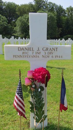 Pfc Daniel J. Grant graduated from Northeast Catholic High School in 1939 and was employed by the ITE Current Breaker Company.He enlisted in Philadelphia, Pennsylvania on 1 November 1942. He was sent overseas on 28 February 1943.