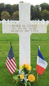 Peter Guest enlisted on 4 February 1942 and was sent overseas in September 1944.Source of information: Kathy McDermott, www.abmc.gov, www.indianamilitary.org - 30th Infantry Division Roster, www.wwiimemorial.com, www.ancestry.com - Headstone and Interment Record / 1930 Census / U.S. WWII Draft Cards Young Men