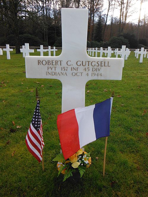 Pvt Robert C. Gutgsell enlisted in Fort Benjamin Harrison, Indiana, on 27 March 1943.He was first buried at the Temporary American Military Cemetery in Saint-Juan, France.