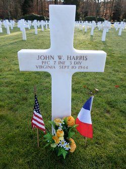 Pfc John W. Harris graduated from the Blair Jr. High School and was a stock clerk, employed at the Norfolk Naval Supply Depot.He enlisted in Richmond, Virginia on 5 July 1943 and had his training at Camp Fannin, Texas.