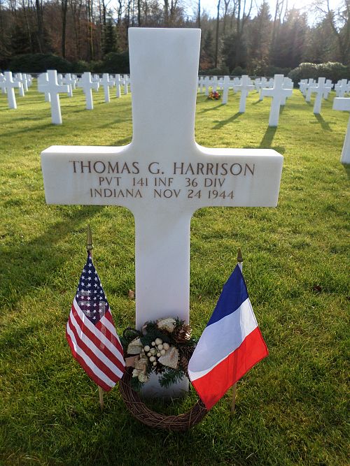 Pvt Thomas G. Harrison was a mechanic before he enlisted at Fort Benjamin Harrison, Indiana on 16 May 1944.Source of information: André Koch, www.abmc.gov, www.wwiimemorial.com, www.archives.gov – WWII Enlistment Record, www.ancestry.com - 1920/1930/1940 Census / Headstone and Interment Record / U.S. WWII Draft Cards Young Men, 1940-1947 / Indiana, Birth Certificates, 1907-1940 / 141aar-October-November-1944.pdf