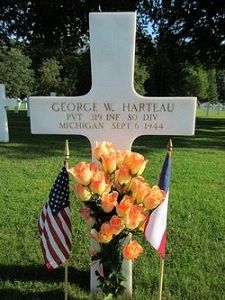 Pvt George W. Harteau attended high school for three years and was a draftsman, employed by the Lloyd Factory, before he volunteered for the Army of the United States in Milwaukee, Wisconsin on 31 July 1942.He was killed by a bullet in the thorax.