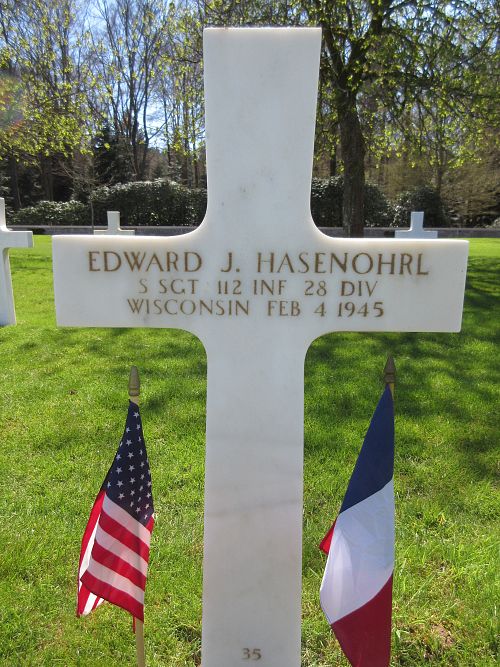 S/Sgt Edward J. Hasenohrl was employed by the Nekoosa Edwards Paper Company before he enlisted in Milwaukee, Wisconsin on 16 September 1942. He was sent overseas in October 1943.He is also remembered at the Saint Marys Catholic Cemetery in Auburndale, Wood County, Wisconsin.