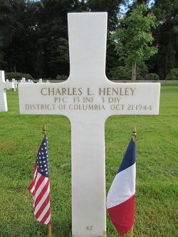 Pfc Charles L. Henley attended high school for four years and was a sales clerk employed by the Peoples Drug Store in Washington DC before he enlisted at Fort Myer, Virginia on 27 February 1943.He was killed by artillery shell fragments in the thorax.